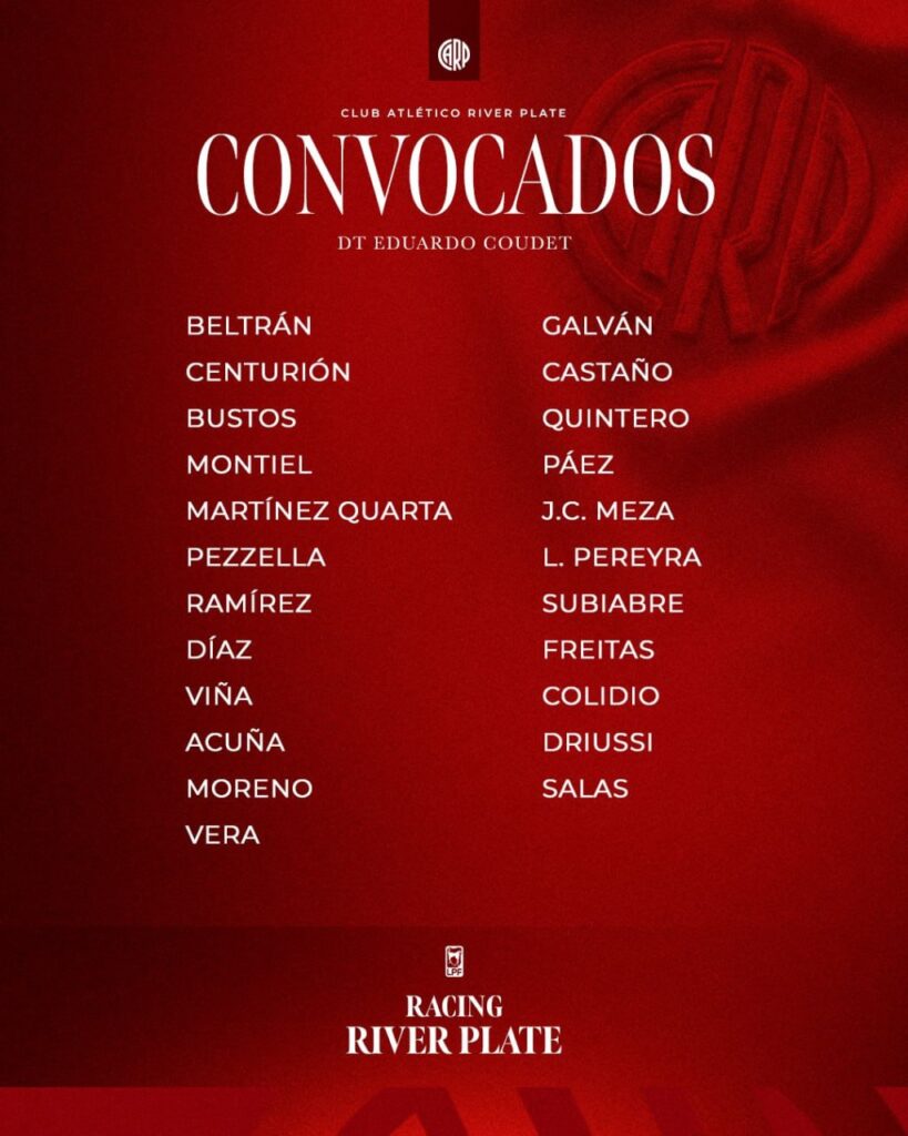 La lista completa de convocados de River vs Racing