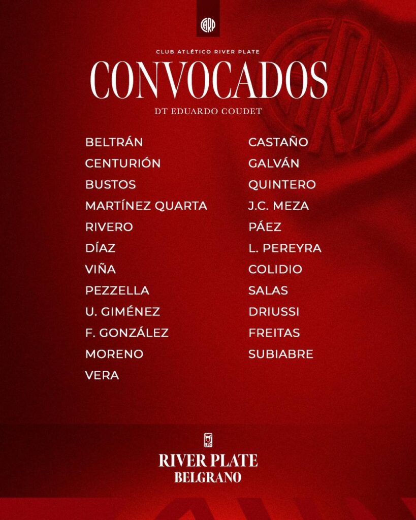 La lista de convocados de River para enfrentar a Belgrano