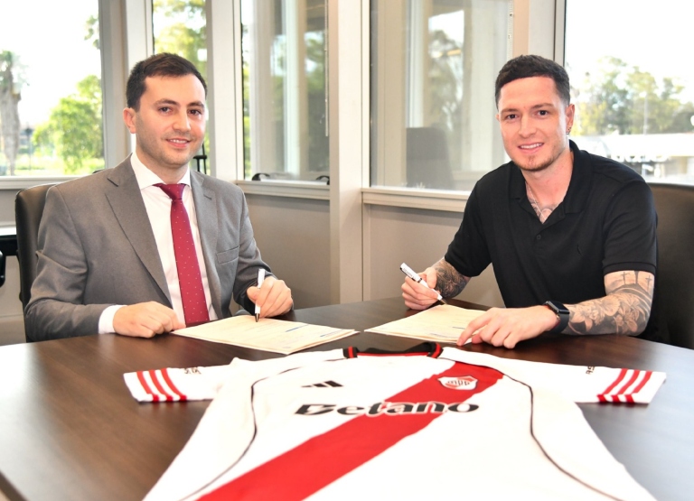 Minutos después, River compartió otro material clásico pero siempre emotivo: la imagen de Aníbal Moreno firmando su contrato junto a Stefano Di Carlo. La foto refleja la formalización del vínculo y pone el foco en la dirigencia que logró cerrar la operación en tiempo récord, apenas 48 horas después de la presentación de Fausto Vera.